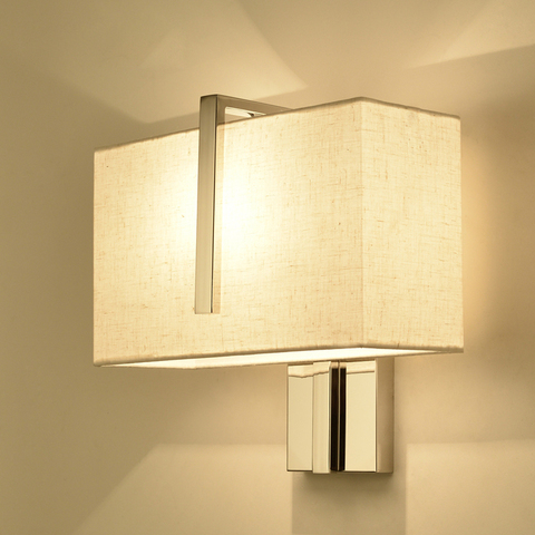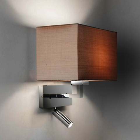 Decoration Bedside Wall Lamp with Led Reading 2 Lights Rectangle square Fabric Shade with USB Charger for Hotel Rooms for Wall
