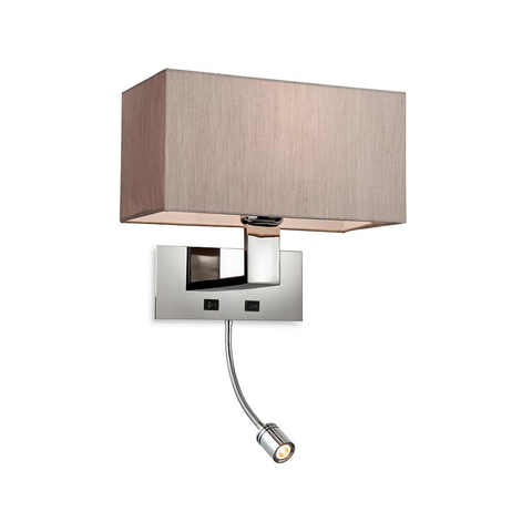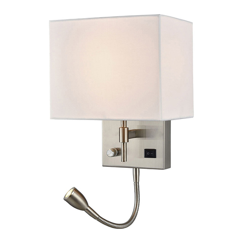 Bedside Wall Lamp with Led Reading Lights Rectangle Fabric Shade with USB Charger for Hotel Rooms for Wall