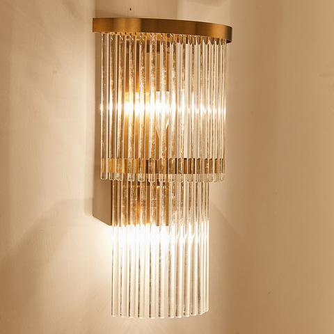 Customized Modern Indoor Luxury Gold Steel Crystal Glass Wall Lamp Sconce for Hotel Lobby Bedside Lights Home Living Room